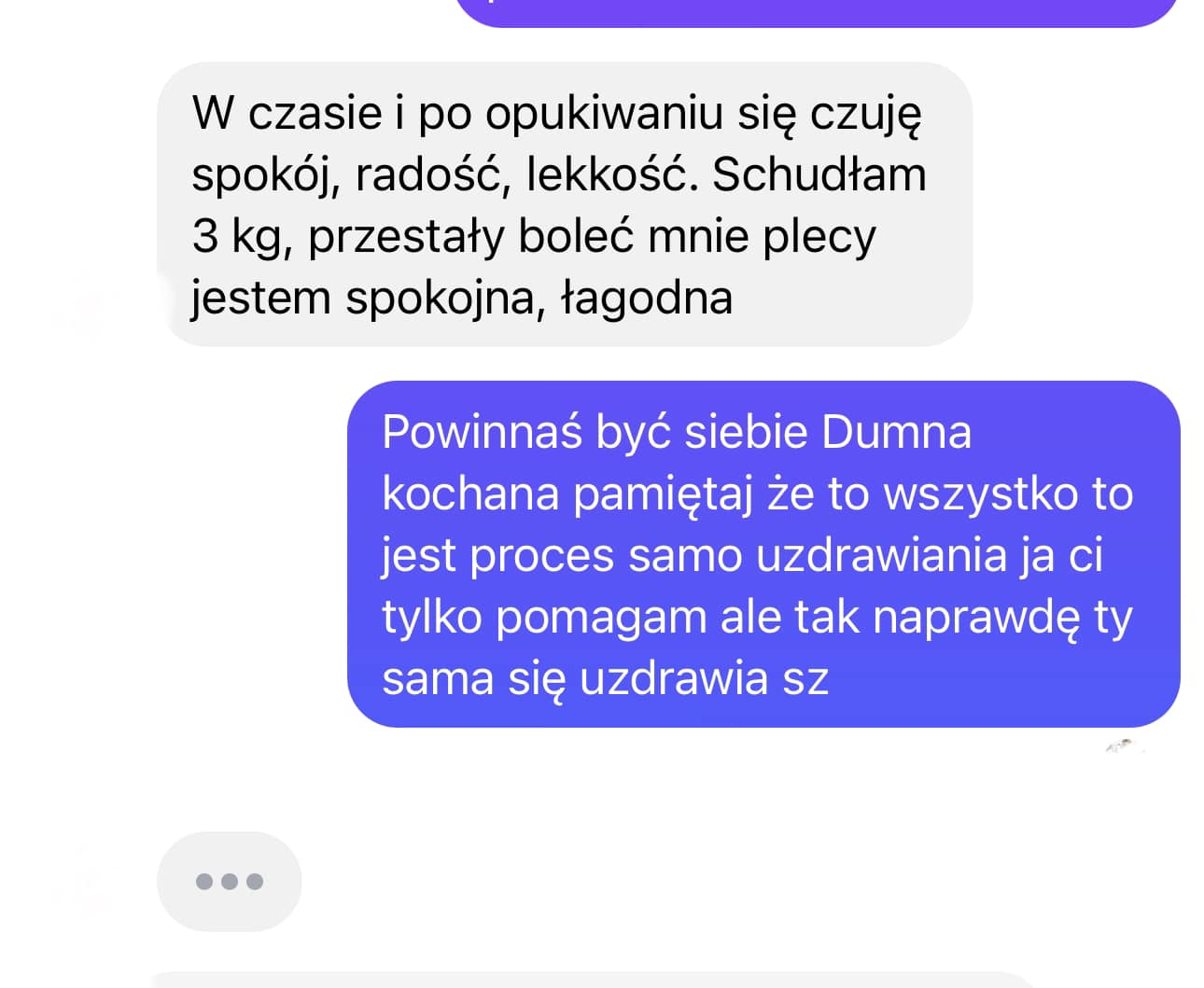 "Polecam z całego serca i ręczę słowem honoru, że terapia EFT z Justyną działa cuda. Powiem szczerze, że nie sądziłam iż ta terapia po pierwszej sesji jest mi w stanie aż tak pomóc, a tymczasem efekt przeszedł mojej najśmielsze wyobrażenia. Jeszcze raz polecam i zachęcam,to naprawdę działa.Dziękuje Justynka" Martyna, Facebook